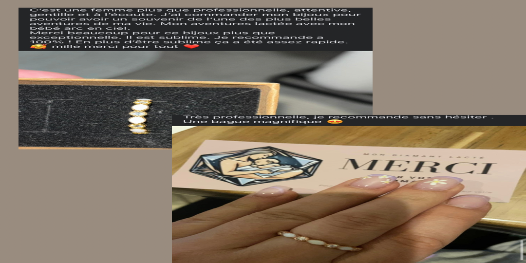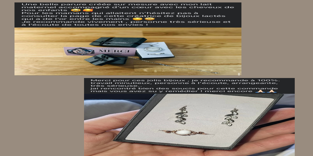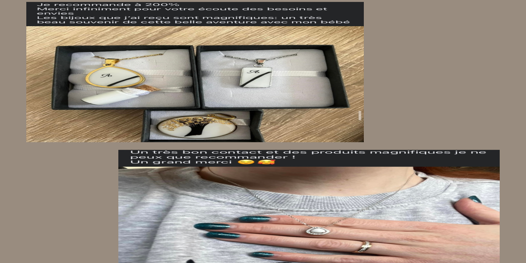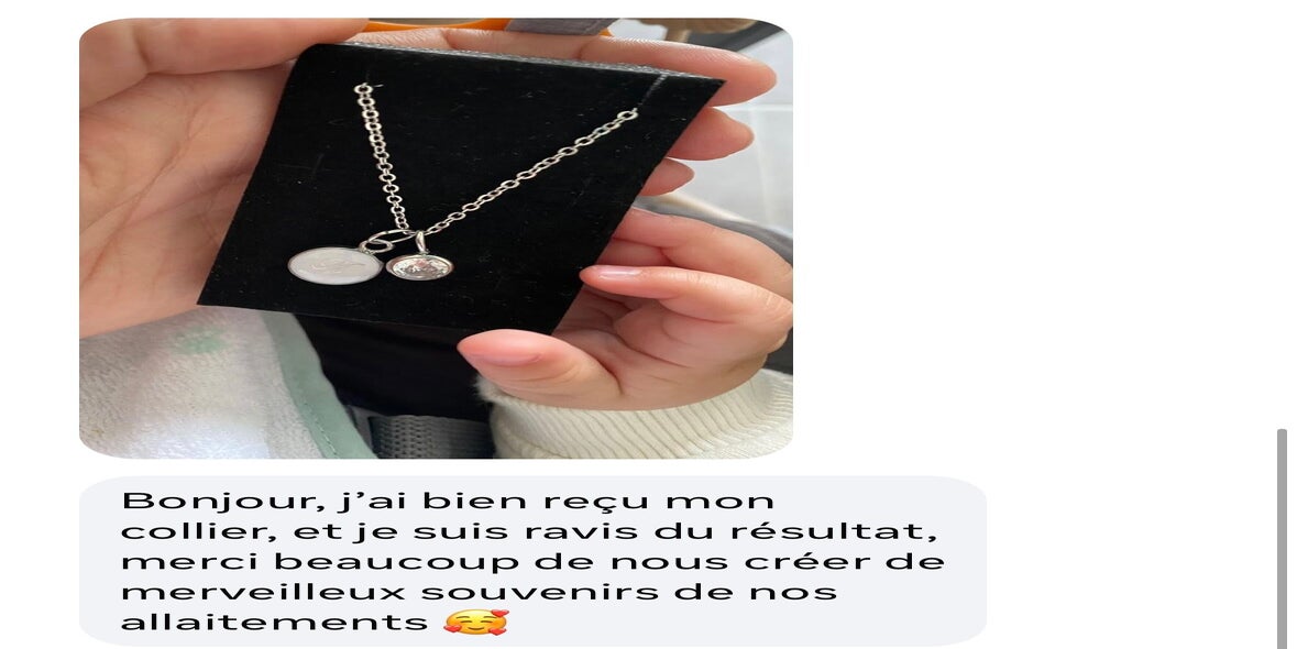 Nos bijoux de lait maternel sont des œuvres d'art uniques, créés avec amour à la main dans le but de capturer le lien spécial que vous partagez avec votre enfant. Découvrez-les dès maintenant ici :