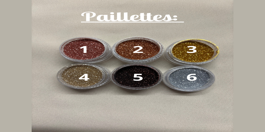 Pour un côté étincelant, il est possible d'ajouter des paillettes et/ou feuilles d'or à la plupart des bijoux. Vous avez le choix entre plusieurs couleurs (voir photos).