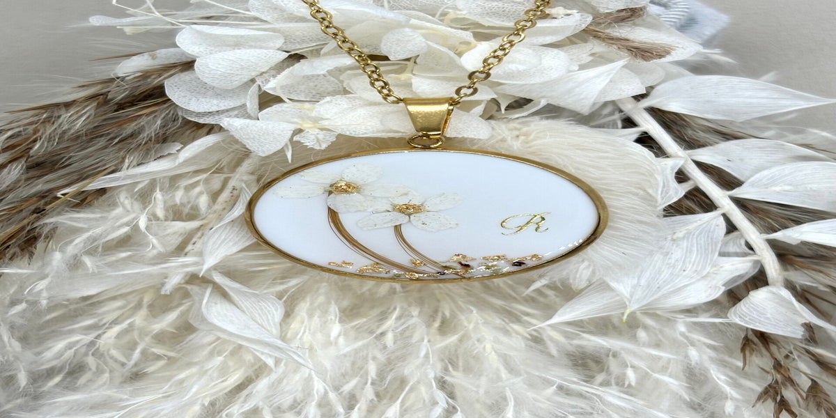 Pour un côté coloré, il est possible d'ajouter une ou plusieurs fleurs séchées aux bijoux proposant cette personnalisation dans leur fiche article. Vous avez le choix entre plusieurs couleurs (voir photos).