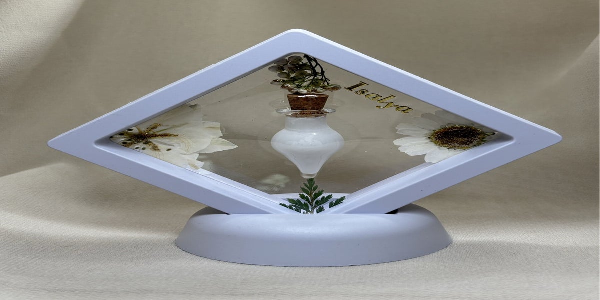 Pour un côté symbolique, il est possible d'ajouter des éclats de cordon ombilical aux bijoux ayant un espace suffisant pour leurs positionnements.