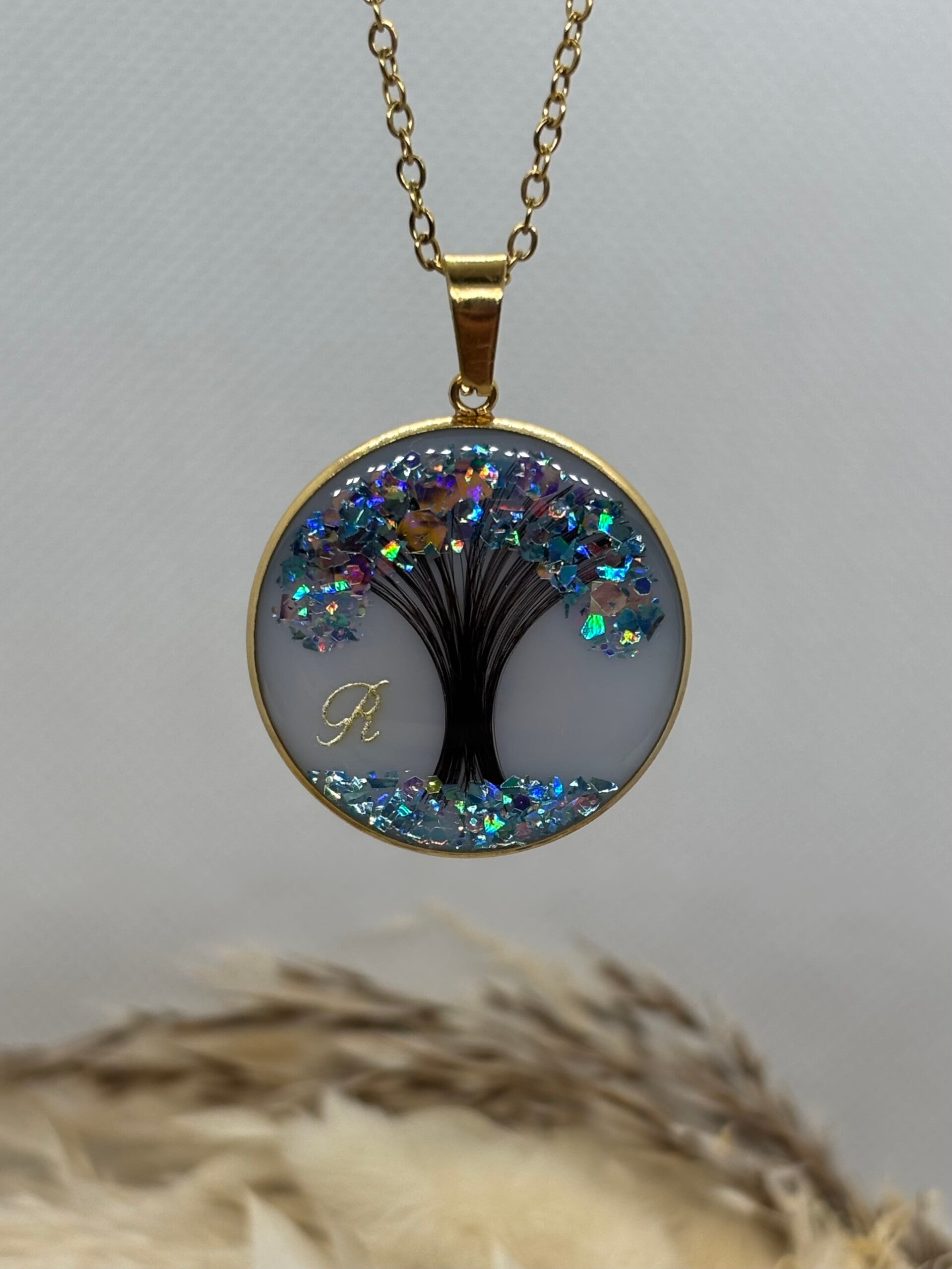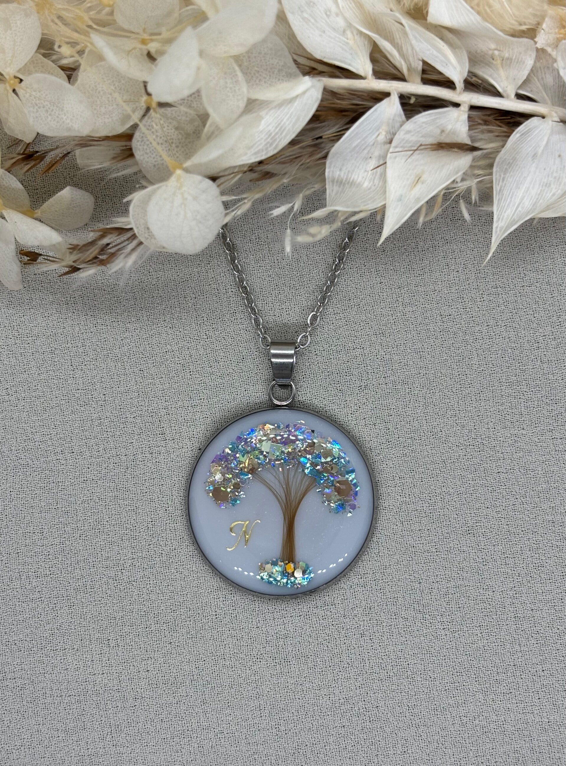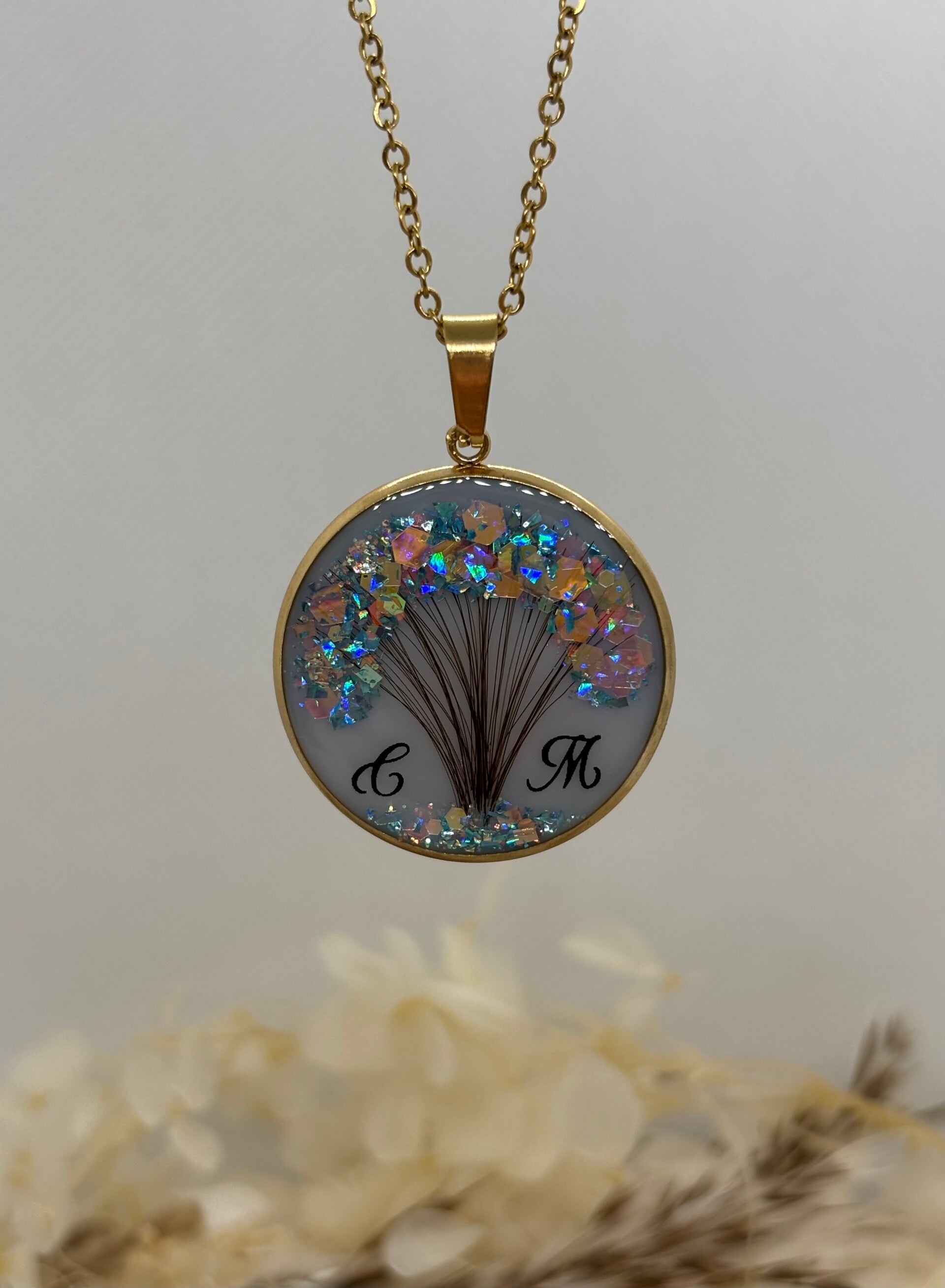 Avec mèche de cheveux en forme d'arbre de vie (possibilité de mettre plusieurs mèches de personnes différentes : 1,2 ou 3 mèches différentes).