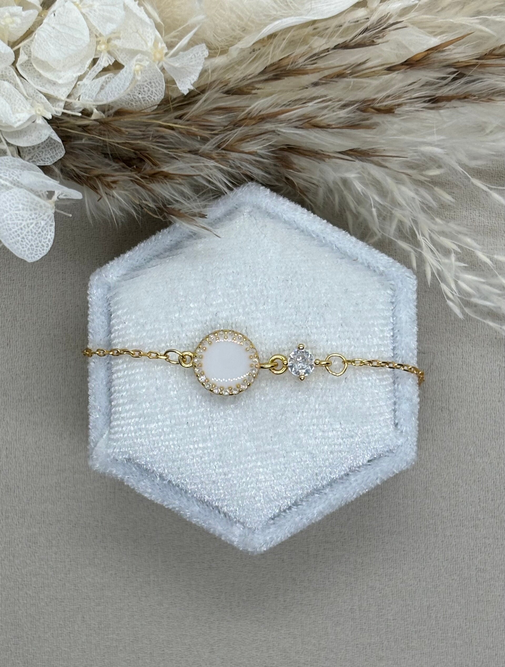 Taille du bracelet réglable de 16,5 à 21 cm.