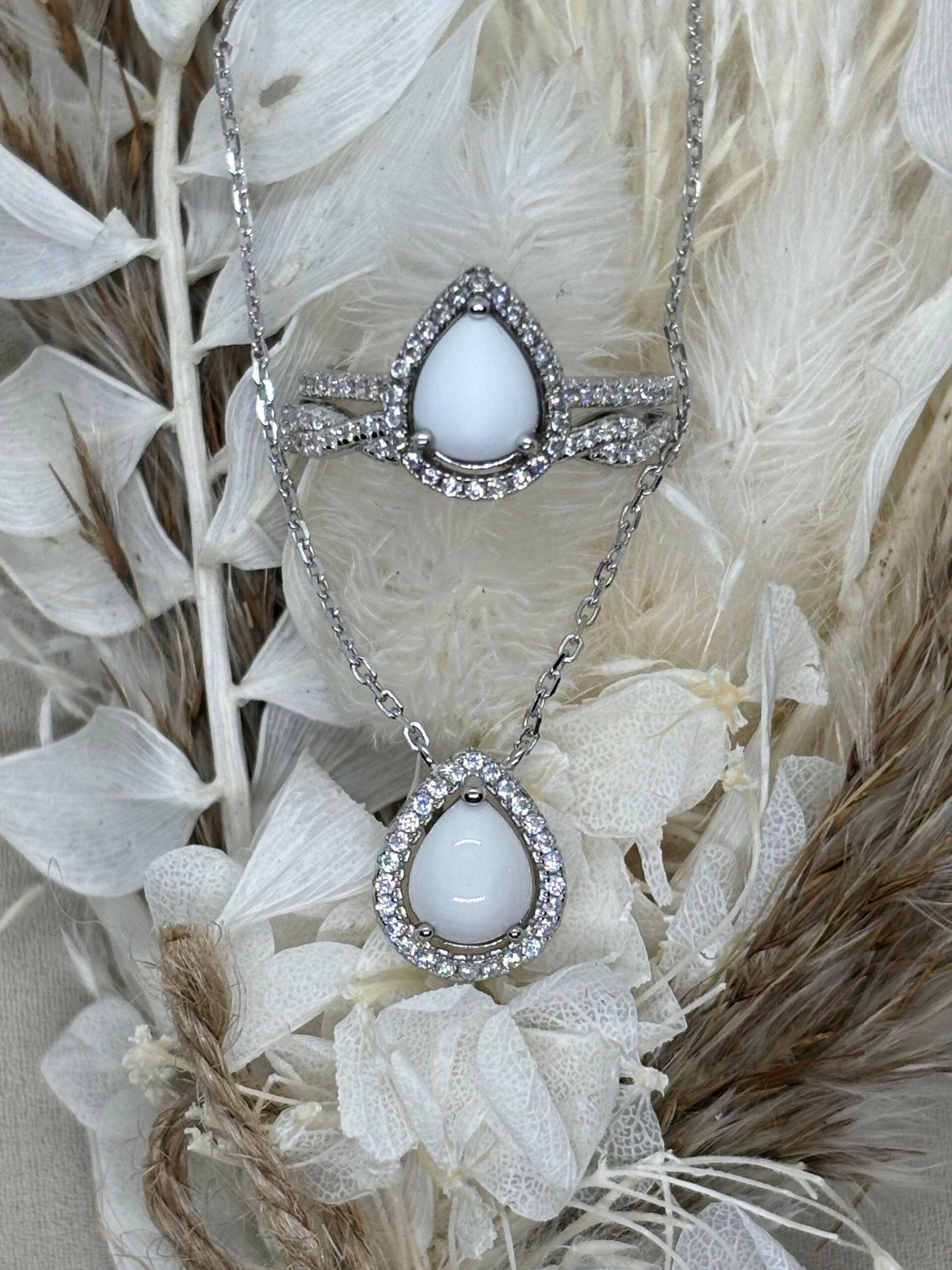 Parure en argent 925 contenant 2 bijoux : un collier et une bague.